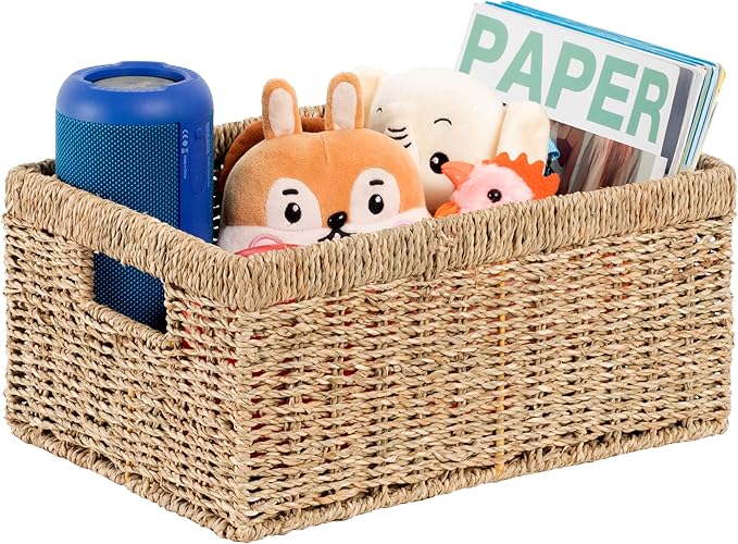 CENBOSS Wicker Baskets (Large, Seagrass, 1PC) Rattan Storage Baskets for Shelves, Woven Seagrass Holder