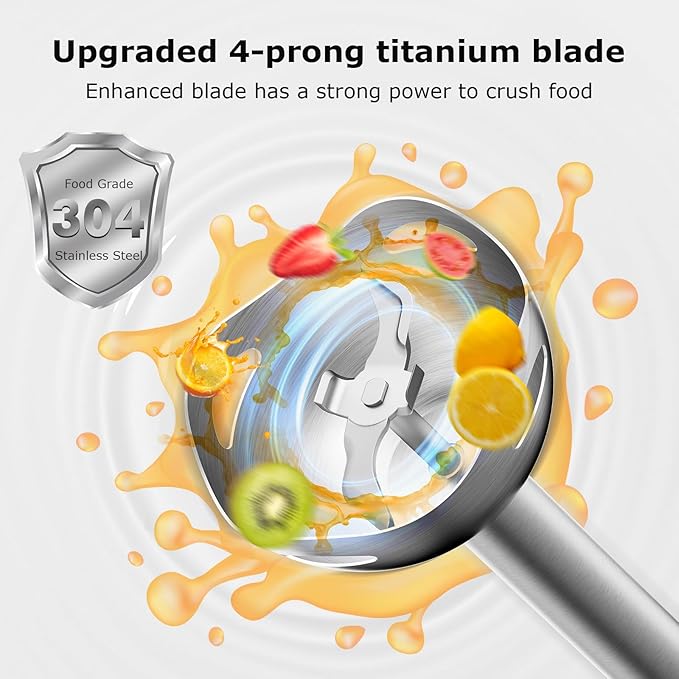 - 【ADJUSTABLE SPEED】 Immersion hand blender with 2 mxing speed can quickly blends ingredients and meet various blending task with its stainless steel shaped blade.