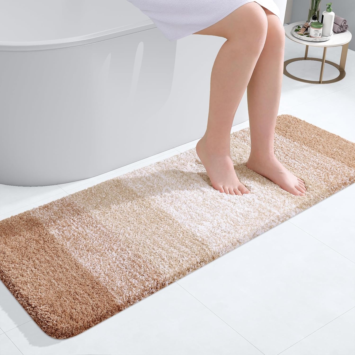 OLANLY Bathroom Runner Rugs 47x17, Extra Soft Absorbent Microfiber Bath Rugs, Rubber Backing, Quick Dry, Machine Washable Bath Mats for Bathroom Floor, Tub and Shower, Home Decor Accessories, Beige
