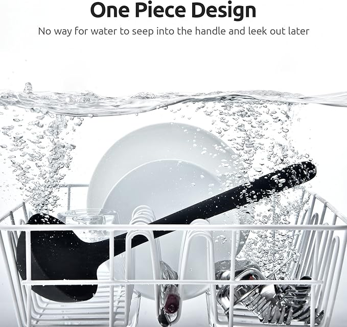 - [600ºF High Heat Resistant] It's made of BPA Free & food grade silicone and handles high heat well. If you forget and leave this kitchen ladle inside a pot of soup while you're eating dinner, it won't melt. You can use this cooking ladle for soups, thick chili, stews, gravy and other foodstuffs and it won't scratch your nonstick pots and pans. Integrated design makes it no small places for food to hide in! Goes through the dishwasher well or it's an easy, quick cleanup in the sink.