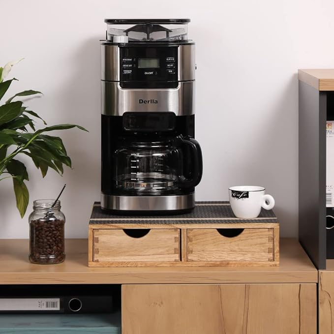 - [PREMIUM INSULATED PLACEMAT]On the top of the wood cabinet is a pieceof complimentary premium placemat which is heat resistant and easy to clean, perfect for coffee brewer /coffee maker,tea potor holder, or as other kitchen accessories machine storage stand shelf.
