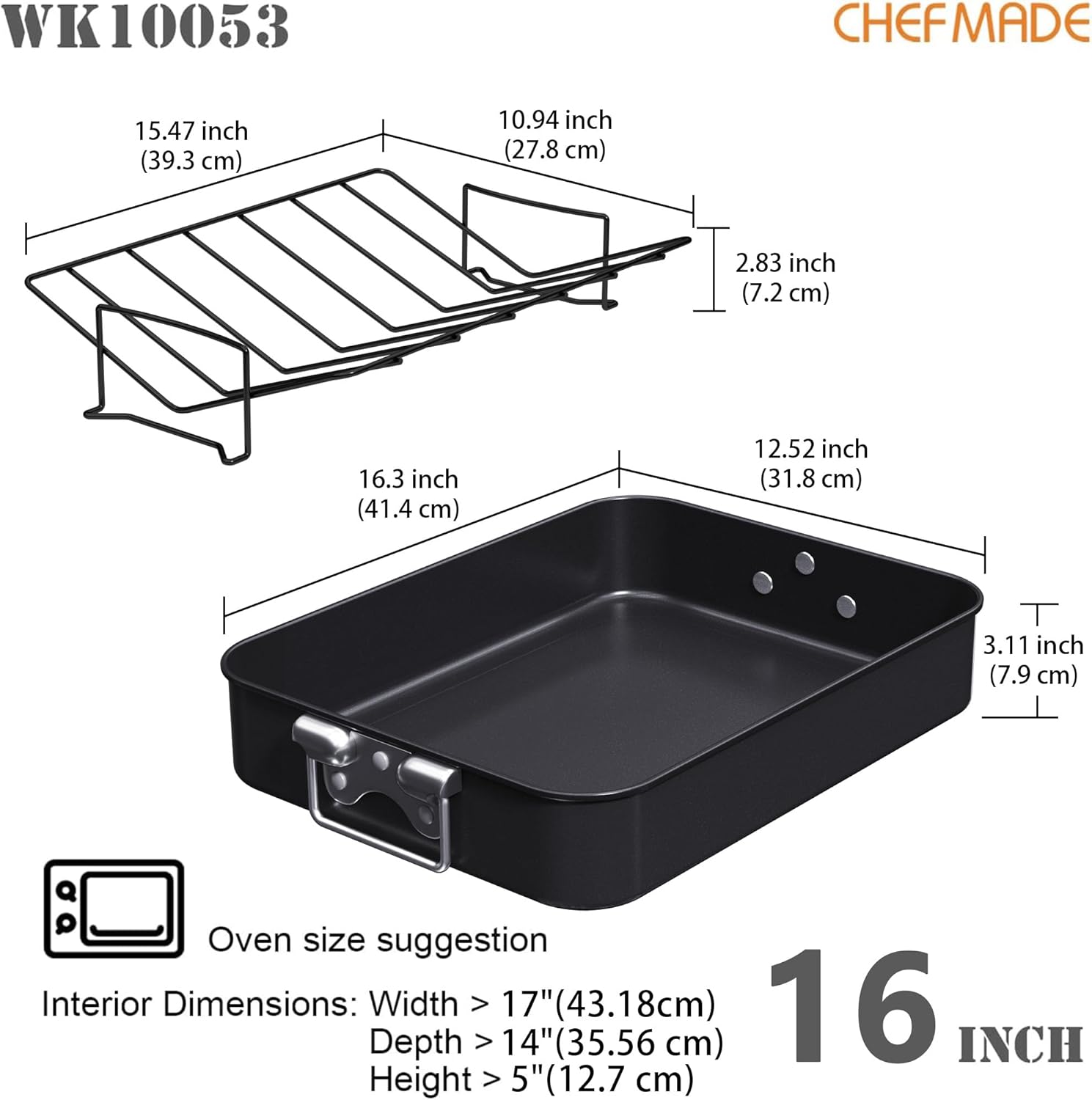 - Spacious Dimensions: Ample enough to accommodate a 18lb turkey, crafted with premium carbon steel and a coating free from PTFE and PFOA, the Chefmade roasting pan is your go-to Sassistant for hosting dinners with friends or enjoying family gatherings.