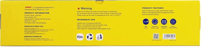 - SANITARY: The restaurant grade kitchen plastic wrap is great for keeping moisture and dirt out. Keeping your food and treats fresh and clean. The crystal clear quality keeps your gifts Alluring
