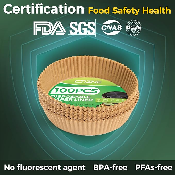 - [Our Mission ]: ctizne insist to provide cooking lovers with premium air fryer disposable paper liners & air fryer accessories! Please check the instructions inside the package for first time use.