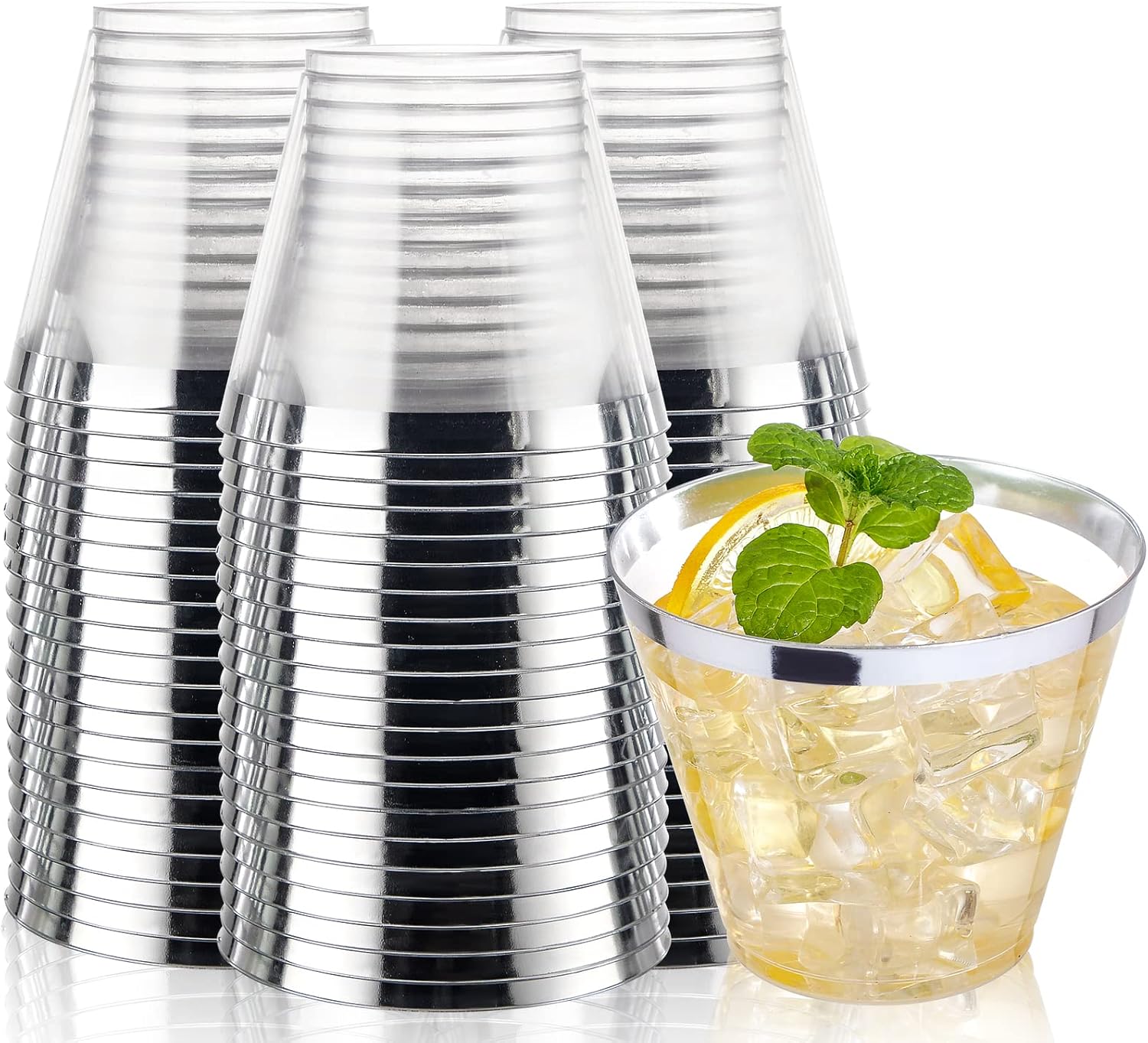 - Value Pack: Comes with a 200 count of silver-rim cups. Each cup has a 9oz capacity, the perfect size for all your drinks like wine, champagne, soda, water, juice, beer, liquor, mixed drinks, punch and teas.