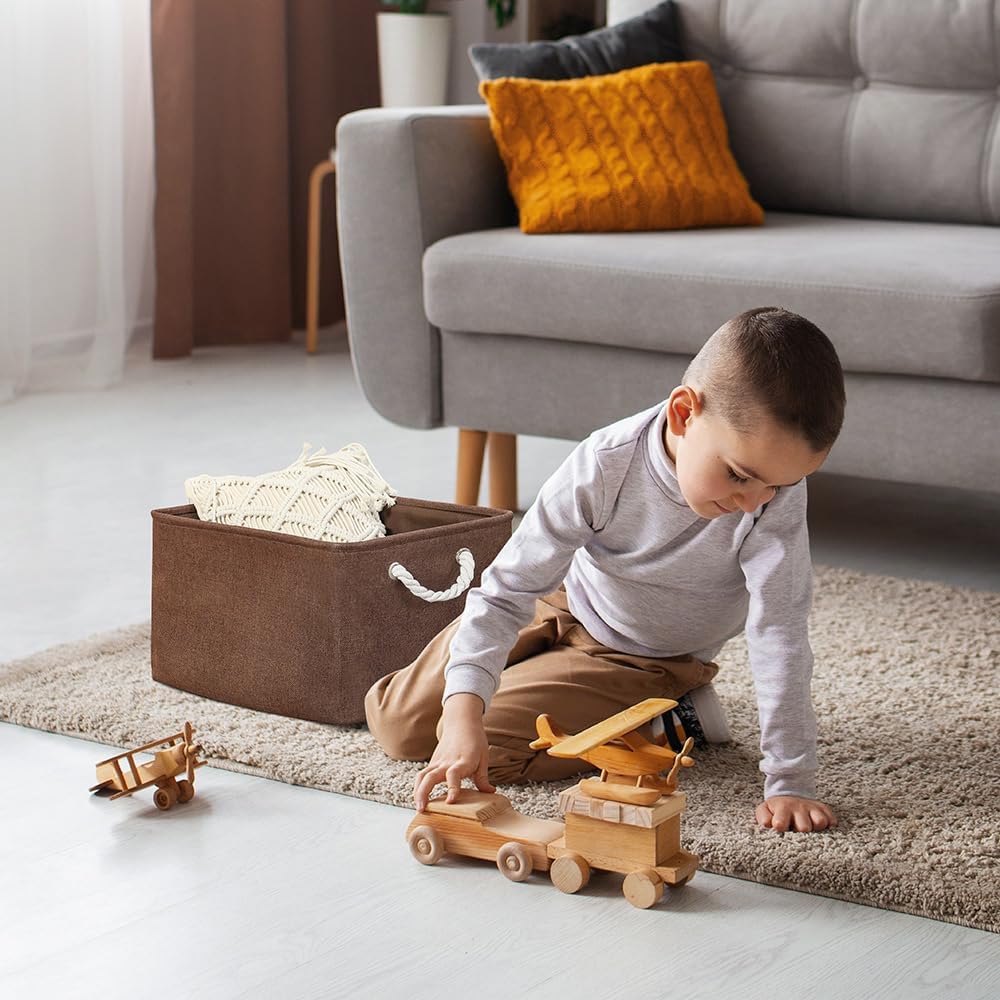 TheWarmHome Organization and Storage Basket for Organizing - 17x14x10 inch 3 Pack Fabric Storage Cubes, Collapsible Storage Bins for Shelves Closet Organizer Toy Gift Cloth (Brown)