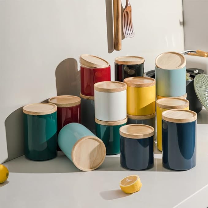 - Ceramic Material - Sweejar food storage containers are made of food grade, smooth porcelain. The containers with wooden lid and rubber seal to ensure a true airtight seal and lightproof. They are good for maintaining food and seasoning fresh.