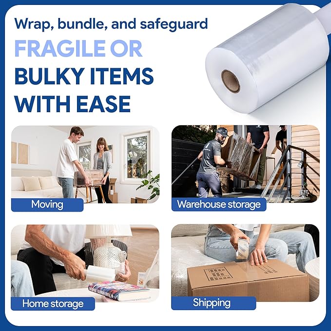 - EFFORTLESS PACKING & STORAGE: Ditch the messy tapes and frustrating twine! This stretch film conveniently wraps furniture, boxes, and more, leaving no residue behind. Perfect for space-saving storage too!