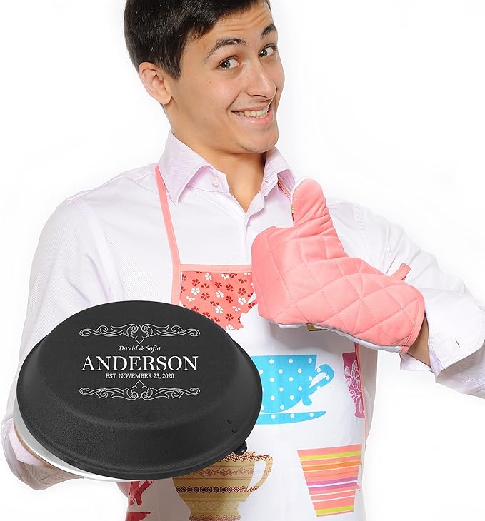 - GREAT GIFT - Customize Pie pan with a beautiful monogram with the personal name to create the perfect awards and gifts for your mother, grandmother , aunt, father, couple, friends, or maybe that special someone in your life. Surprise others with a unique Wedding, Anniversary, Birthday, Thanksgiving, Mother’s Day, Father’s Day, Bridal shower, Housewarming gift. Personalized Pie/Cake Pan can also be use as a décor and it will be as a perfect accent to any kitchen.