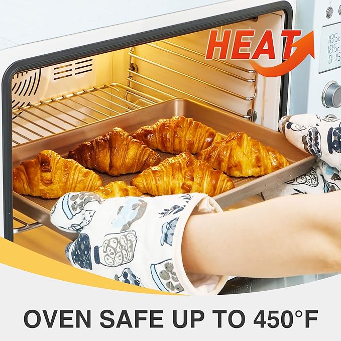 - PREMIUM EXTRA-THICK MATERIAL - With 57% thicker carbon steel, these durable oven trays are constructed from heavy-gauge carbon steel for stability, even heat distribution, and durability for years to come. Warranty against peeling off with heat-resistance temperature: 450β.