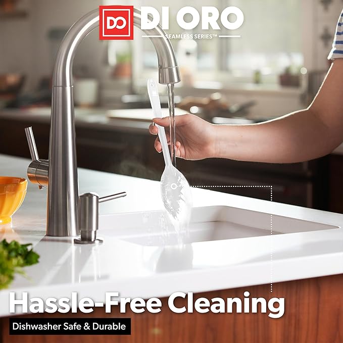 - ONLY THE BEST โ By popular demand, we have added a 2-Piece Silicone Spoon Set to our Award-Winning Seamless Series line of kitchen utensils. The DI ORO Seamless Series Slotted and Solid Spoons are made with food grade, BPA Free, and LFGB Certified Silicone. Built to withstand the heat, these essential kitchen tools are heat-resistant up to 600ยฐF, which means you will never melt your favorite spoons.