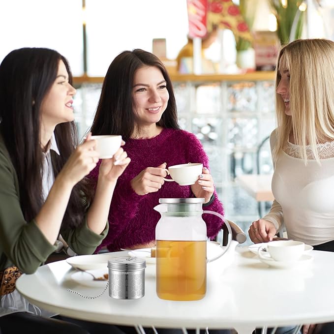 - 【Truly Extra Large Size Tea Filter】 the steeper measures 3.15" diameter and 2.87'' high. Constructed with extended 7.8'' long chain with hook makes it an ideal family-sized tea diffuser for a large pitcher, tea kettle & teapot. The tea infuser can easily hold 12 teaspoons of tea to make a large batch of tea at once and ensures enough room for tea for expand to extract flavors. Before purchase please make sure if the diameter of our infuser fits in your container.