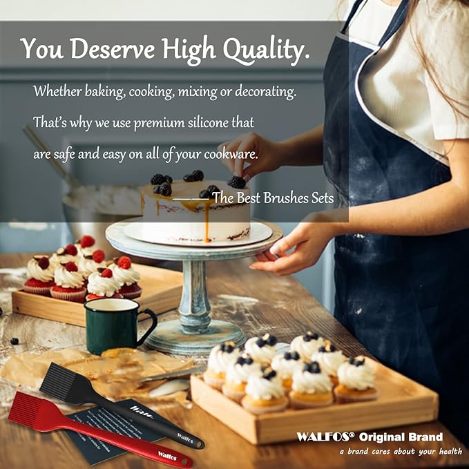 - ★ PREMIUM SILICONE, HEAT RESISTANT UP TO 450°F - WALFOS small basting pastry brush made of high-quality food grade silicone which is BPA free. Safe to use in Oven, Microwave, Dishwasher & Freezer. Will never melt, discolor or shrink when grilling, basting or cooking (unlike some plastic, nylon or wooden brushes).
