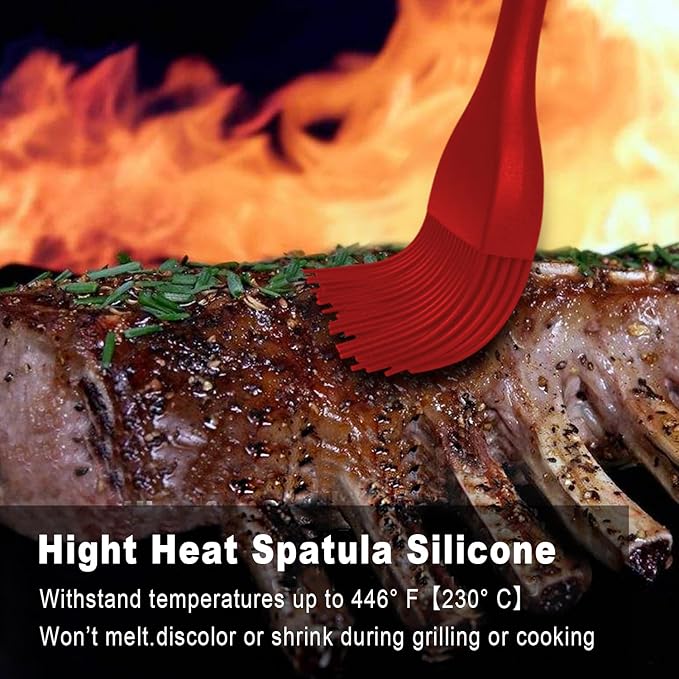 - ★ Upgraded ONE-PIECE DESIGN & STAINLESS STEEL CORE TECHNOLOGY - Owing to ONE-PIECE design, the silicone bristles will not break or shed in your food, unlike other bristle brushes. No bacteria will be stuck in the silicone basting brush and keep your food safe. The handle built with internal steel core results in a solid durability to our basting oil brush, it is also long enough to get a firm grip, never break and rust.