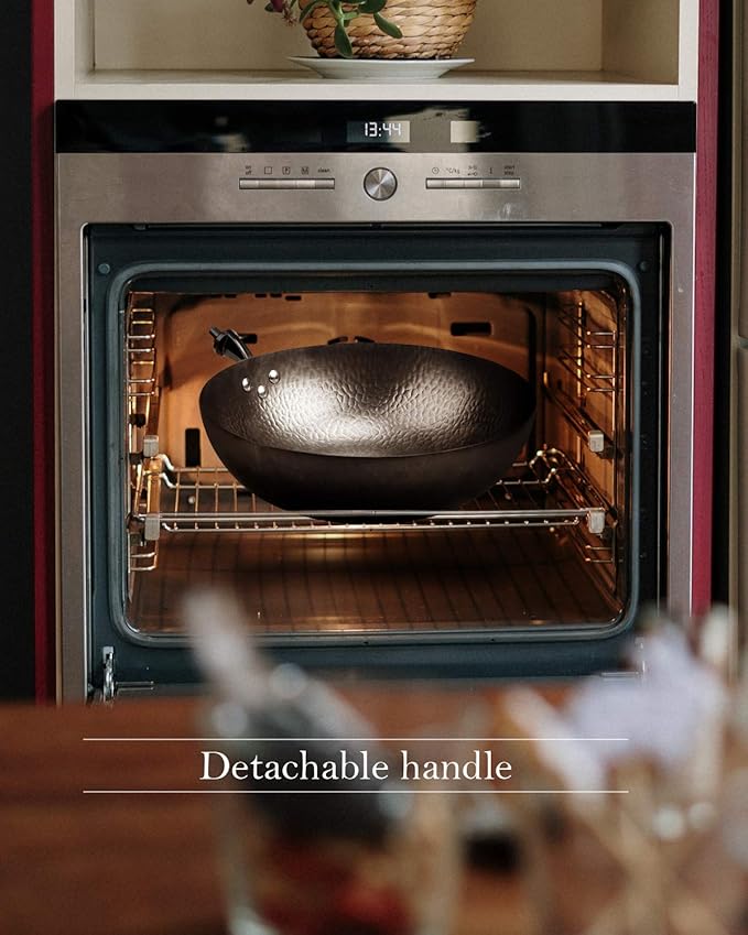 - EMBRACE A HEALTHIER & LASTING:The surface is nitrided, our woks are proudly Teflon-free. Although not a typical non-stick woks & stir-fry pans, rest assured, with the right seasoning, its performance only gets better! And what's more, its life is significantly extended, and the risk of rust is lessened.