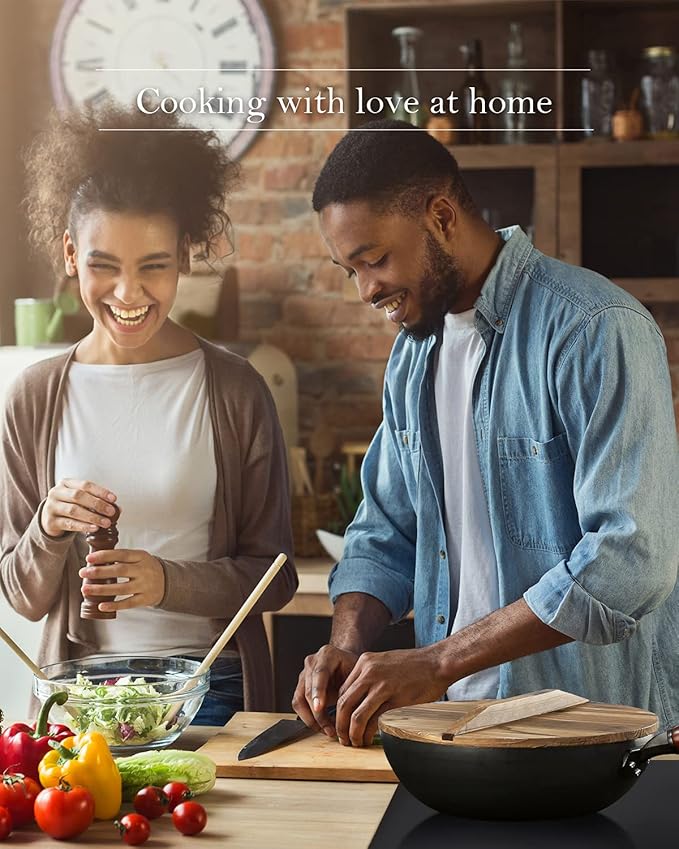 - MUlTI-PURPOSE WOK SET: The wok, crafted from carbon steel, boasts exceptional heat conduction and durability, perfect for creating authentic Chinese cuisine. It is also versatile, suitable for cooking a wide variety of ingredients and adaptable to numerous cooking methods. This helps maintain the flavor and nutritional value of your food. So go ahead and give it a try!
