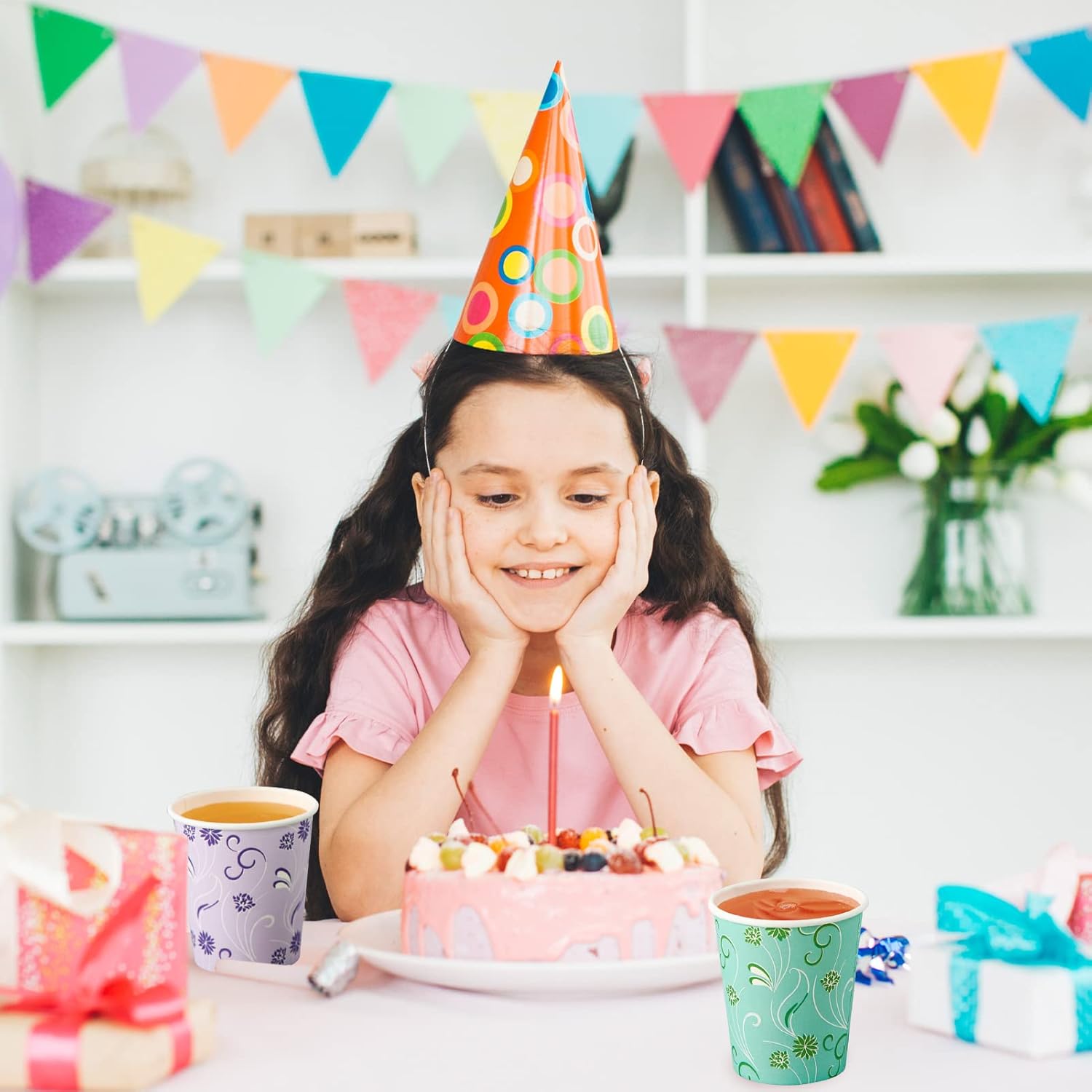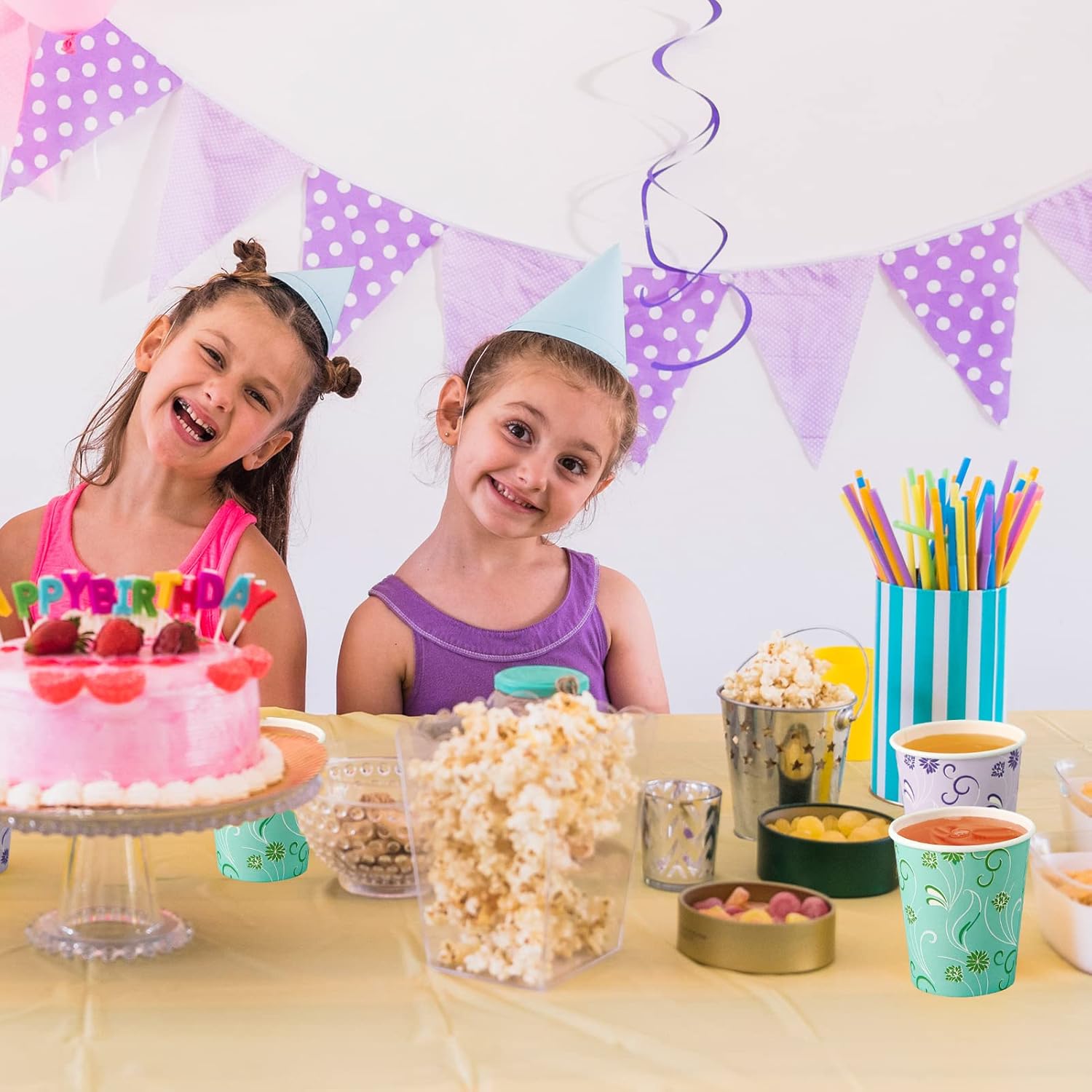 - Widely used: Colorful paper cups can be matched with any occasion, Cups can be stacked without taking up too much space, Suitable for parties serving snacks, drinks, and fruit desserts