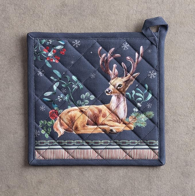 Maison d' Hermine Pot Holders 100% Cotton Heat Resistant Potholders 8" x 8" Hot Pads with Loop BBQ, Cooking, Baking, Grilling, Kitchen, Handling Hot Pans (Pack of 1, Christmas Joy)
