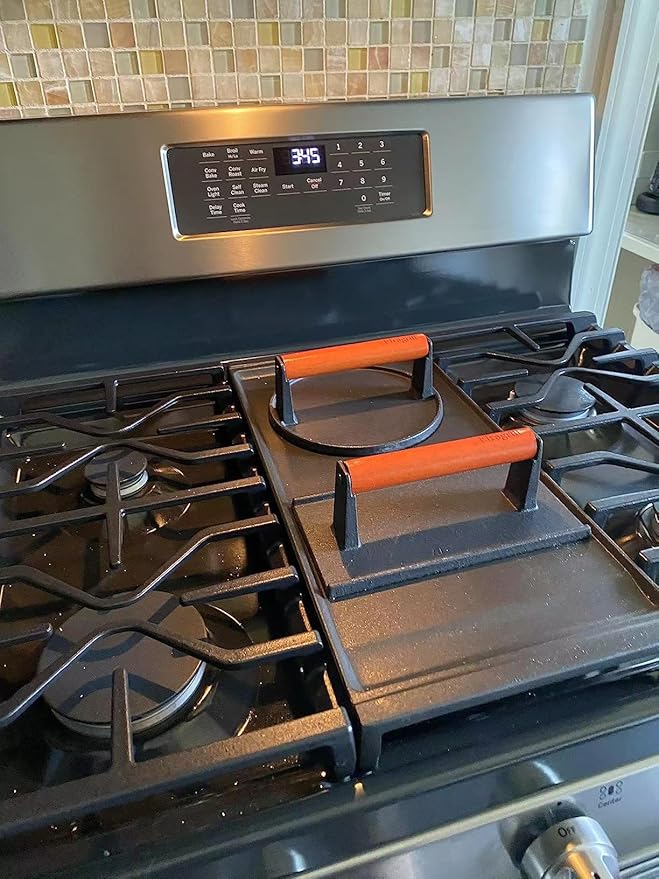 - 【Commercial Grade Accessories for Griddle】 Cast iron flat grill press, they’re used by real griddle masters. HOMENOTE offers you professional chef-level flat top grill accessories for Blackstone so you can make your own restaurant-like cuisine at home.