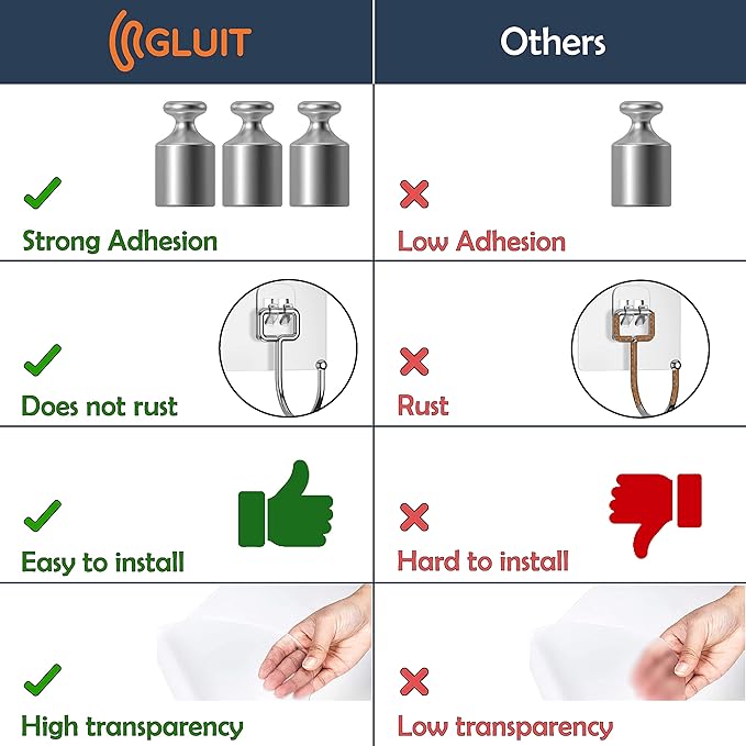 - Easy to use: Apply clear adhesive hooks effortlessly to clean and reposition without damaging surfaces; no nailing or drilling required; reuse after cleaning and drying; keep accessories secure on any surface.
