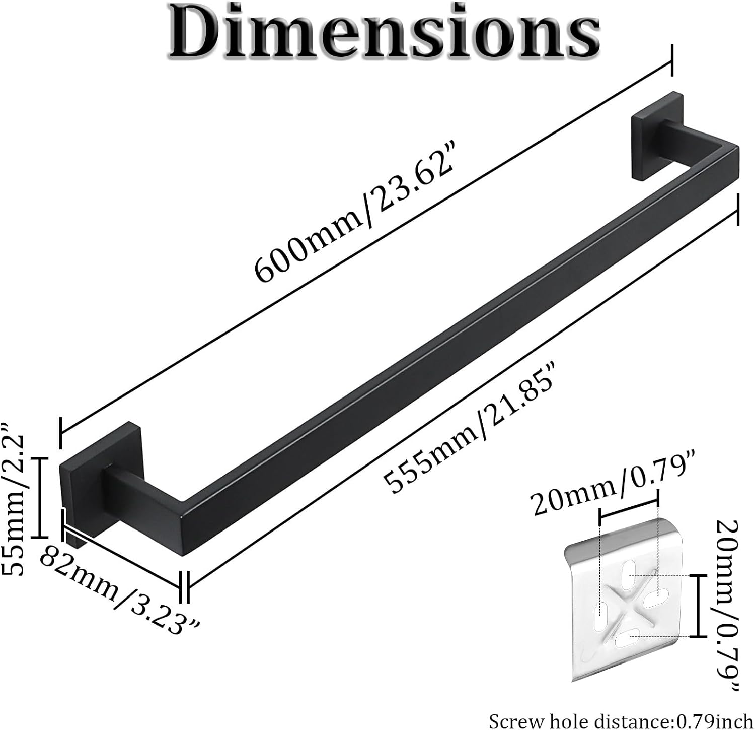 - 【Measure Before Buying】Dimensions 23.62''Lx2.2''Wx3.23''H, Useable Length 21.85 Inch towel hanger. 2.8 Inch Separation Distance from Wall - Enough space for quick drying, hanging towel quickly.No need to fold your towel any more.If you have any questions about the black towel bar, please feel free to contact me at any time