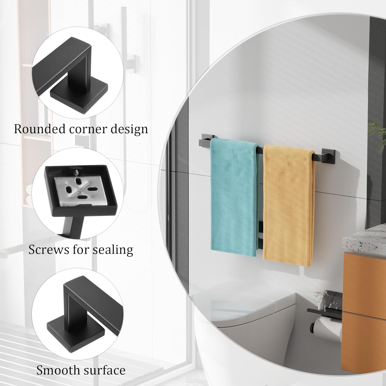 Alise Black Towel Bars,23.62 Inch Towel Holder Towel Racks for Bathroom and Lavatory,SUS304 Stainless Steel Hand Towel Hanger Rail Wall Mount,Useable Length 21.85 Inch Towel Bar, GYT060-B