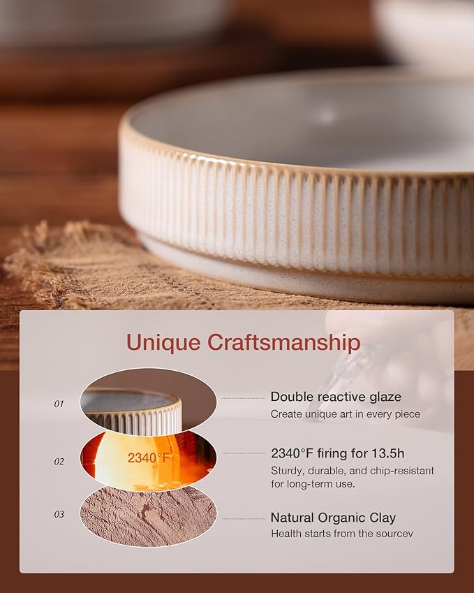 - CLEAN AND SAFE: Our premium stoneware bowl is LEAD-FREE and CADMIUM-FREE, safe for family and the environment. Savor meals with confidence, from steaks to salads and desserts
