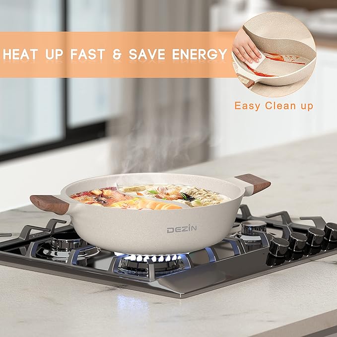 Dezin 5-QT Double-flavor Shabu Shabu Pot with Divider, Dual Sided Nonstick Hot Pot, 12 Inch Divided Stockpot for Cooking, Hotpot for Induction Cooktop, Gas Stove & Hot Burner, Soup Ladle Included