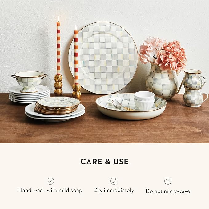 MACKENZIE-CHILDS Enamel Serving Platter, Decorative Serving Platter for Food, 16 Inches, Gray-and-White Sterling Check