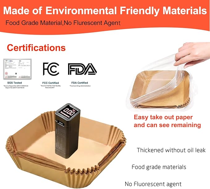 - Even Heat Circulation for Perfect Results: these air fryer accessories allow hot air to circulate evenly, ensuring your food cooks uniformly.the air circulation will not be interfered with by using disposable paper liners. When baking, the grease will flow onto the paper liner, giving you healthier food.