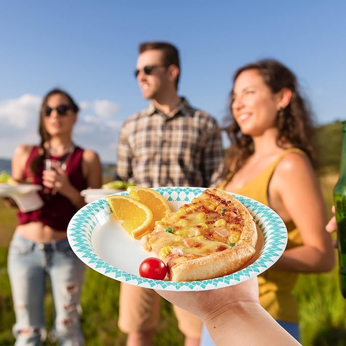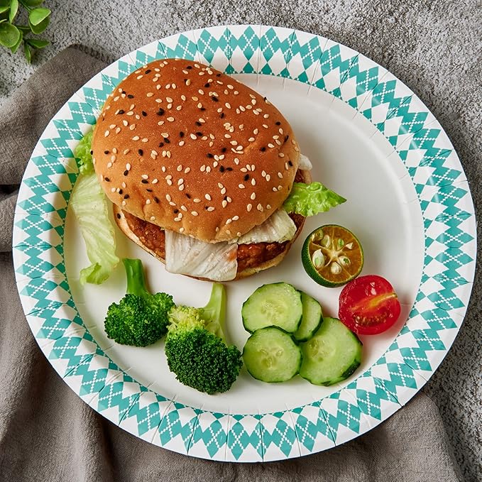 - Everyday disposable paper plates Perfect for dinner parties Summer picnics, decorative paper plates with blue pattern diamonds for a variety of themed parties and events
