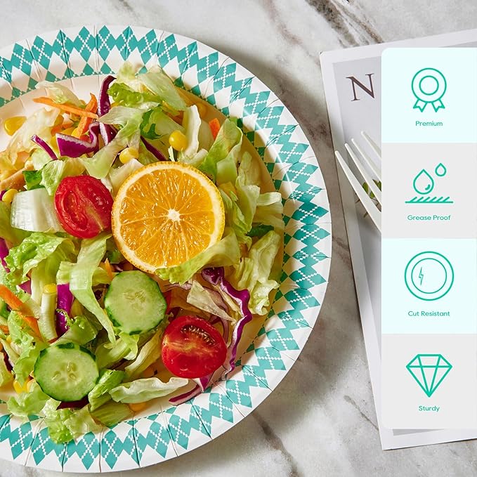 - Sturdy paper plates are made of high quality material and are cut resistant, paper plates have some depth for messy and large quantities of food without deformation.
