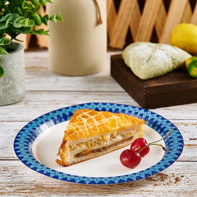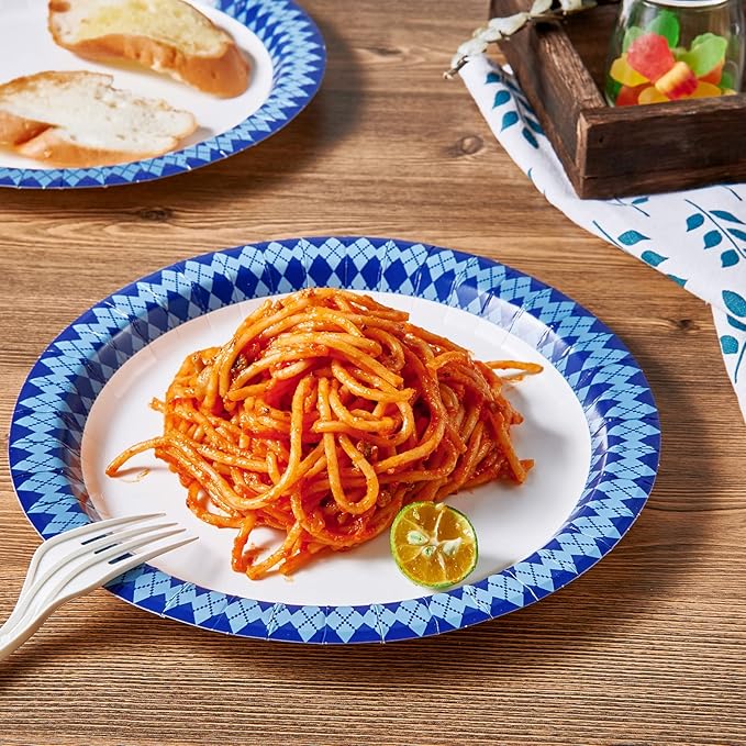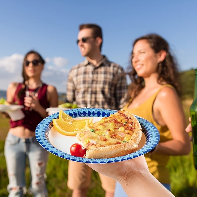- Everyday disposable paper plates Perfect for dinner parties summer picnics, decorative paper plates with navy pattern diamonds for a variety of themed parties and events