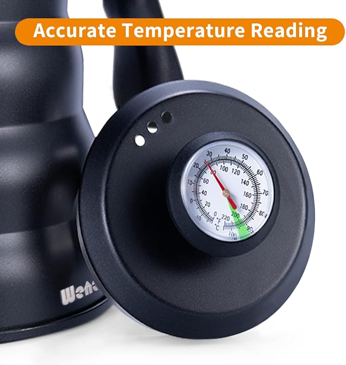 - PRECISE TEMPERATURE EVERY TIME - Built in thermometer allows you to pourover coffee at the optimal temperature (195-205°F) to extract full flavors and aromas.
