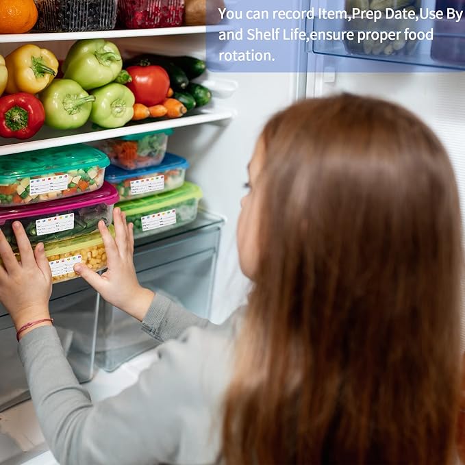 - Kitchen Helper: Just a quick glance to get the food validity with our food storage stickers, which makes sure food fresh and highly prevent spoilage and freezer burn. Widely used for plastic containers, aluminum foil, food packaging bags, glass jars and more.