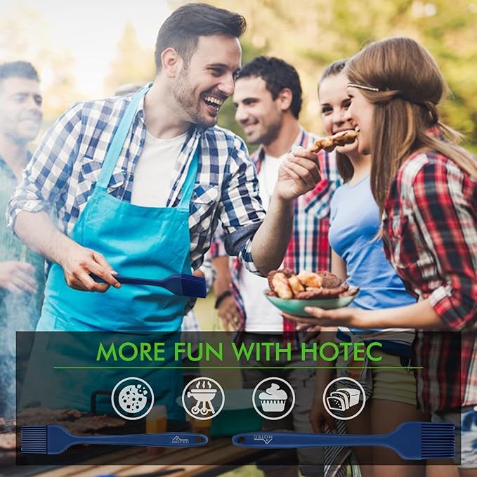 HOTEC 2 pieces Set Basting Brushes Silicone Heat Resistant Pastry Brushes Spread Oil Butter Sauce Marinades for BBQ Grill Barbecue Baking Kitchen Cooking BPA Free Dishwasher Safe (Classic Blue)
