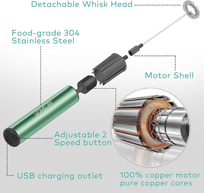 - β EASY TO CLEAN: The detachable food grade premium stainless steel whisk heads are easy to clean: just run under water and use soap if needed, or clean in the dishwasher. Milk frother electric can stand on the table or countertop by itself without any stand. Itβs lightweight and economical design, easy to store for any kitchen.