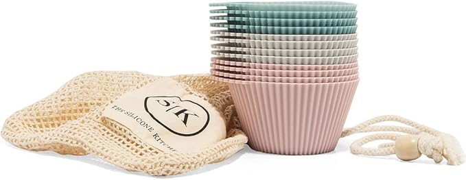- INCLUDES 12 jumbo food-grade reusable silicone baking cups in 3 beautiful colors, 4 Dusty Rose, 4 Dusty Blue, 4 Pearl Gray, in a gift-worthy cotton mesh reusable produce bag