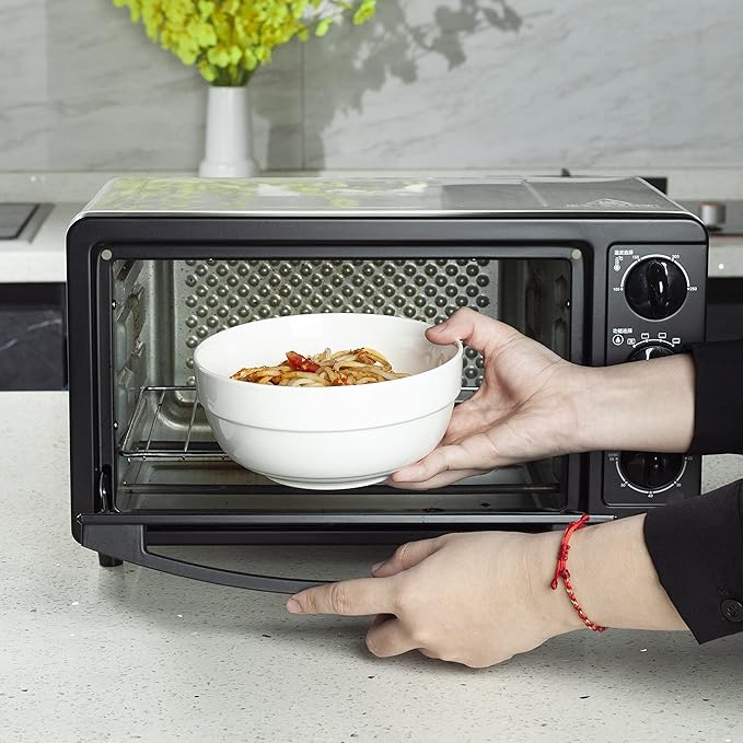 - 【Safe and Durable Pro-grade Porcelain】: These ceramic bowls are made of durable porcelain, non-toxic, lead-free, cadmium-free that safe for daily using, never worry about harmful substances leaching into your food. They are fired at a high temperature to maximize the strength of the porcelain, sturdy enough to prevent from chip& crazing& scratches, withstanding the harsh tests of long-lasting daily life. SAFE FOR DISHWASHER, MICROWAVE, OVEN AND FREEZER.