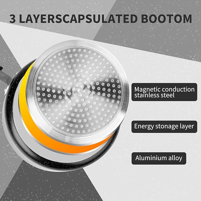 - [Multiple Layer Non Stick Coating]Premium non stick interior featured exceptionally durable, double coated, and scratch resistant,which is ideal for easy cooking,re-heating vegetables,sauces,pasta or soup.Easy to clean for superior nonstick performance,just clean by soft sponges.