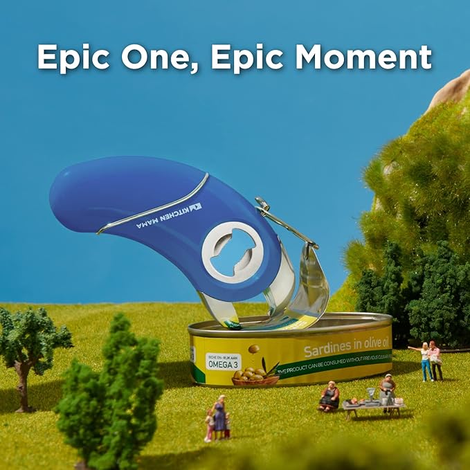 Kitchen Mama Epic One Multifunction Opener: Magnetic Bottle Opener, Beer Soda Opener, Effortless Jar Lid Opener for Seniors and Elderly with weak Hands and Arthritis, Essential Kitchen Gadget (Blue)