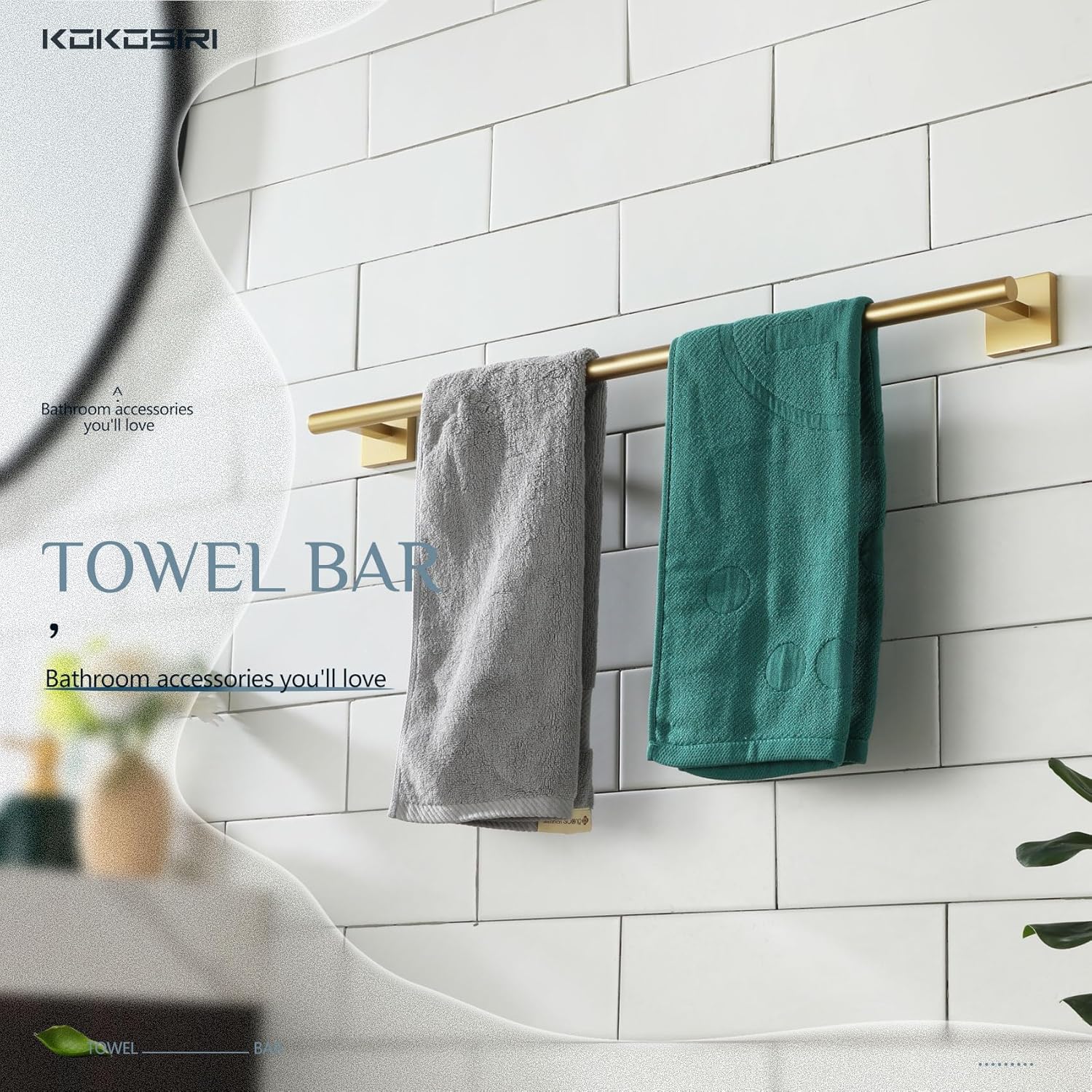 KOKOSIRI Bathroom Towel Bar Bath Towel Holders for Toilet Kitchen Cabinet Wall Mount 24 Inch Brushed Gold Stainless Steel B4005BG-L24
