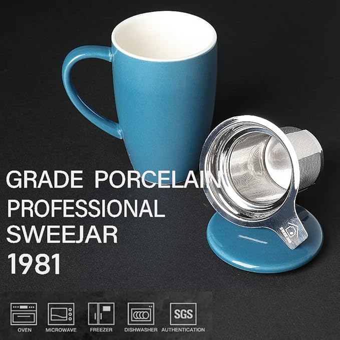 - Durable Material—Sweejar cup is made of reliable porcelain which is breakage-proof. The tea infuser is 18/8 stainless steel. The lid can be used as a tray for the infuser.Ceramic cups is safe for and dishwasher easy to clean.