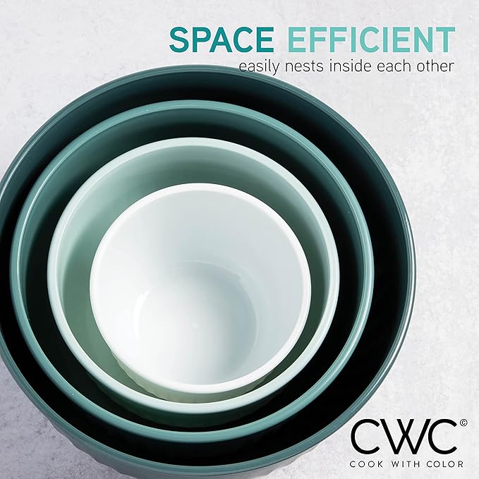COOK WITH COLOR 4pc Plastic Mixing Bowl Set with Lids (Teal Ombre, 210 ml, 550 ml, 1150 ml, 3500 ml) - Sturdy, Nesting, BPA Free, Dishwasher Safe, Food Safe, Bowls for Cooking and Baking