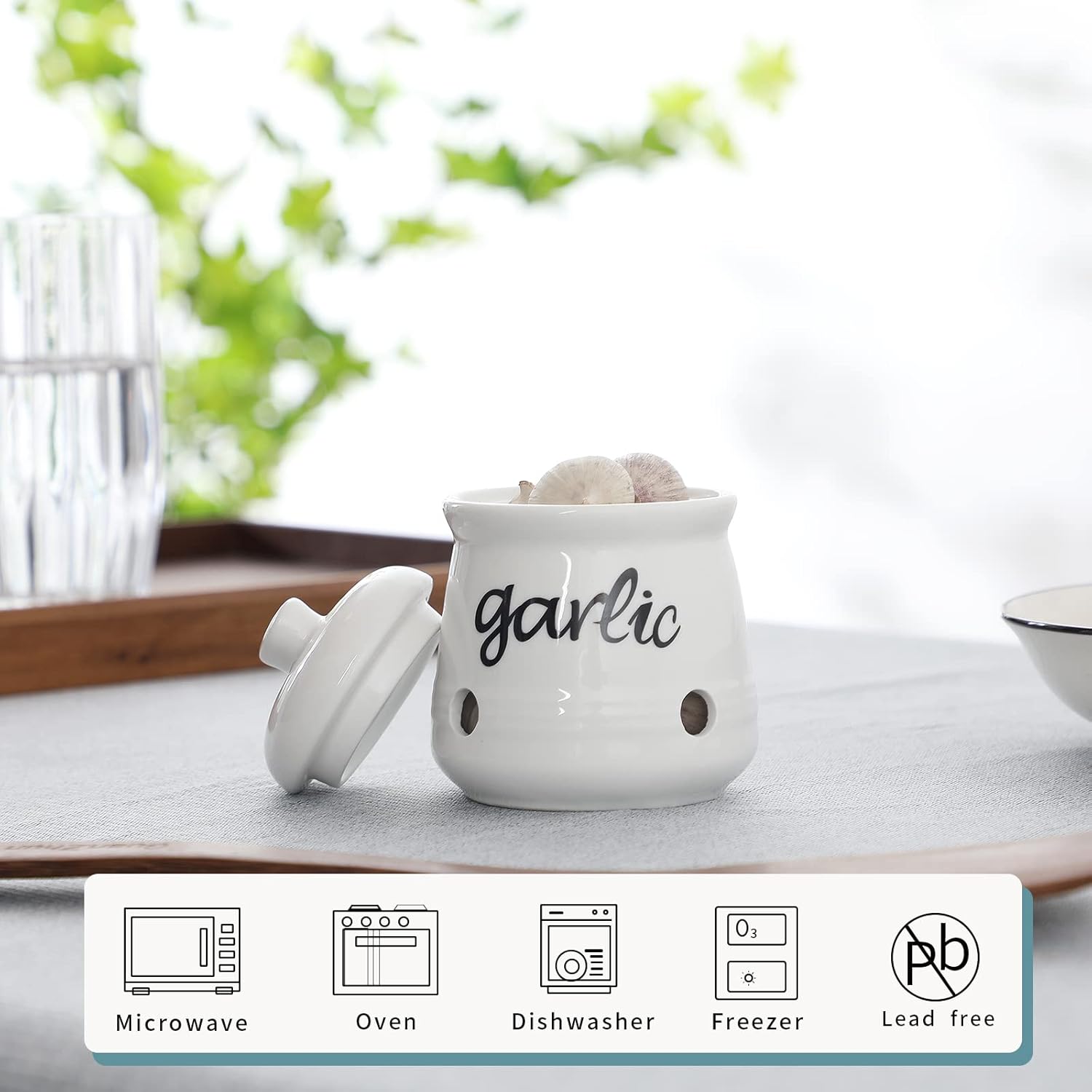 - CLEAR GARLIC: Garlic container bowls porcelain itself has the clear words "garlic " which is tailor made for container bowl