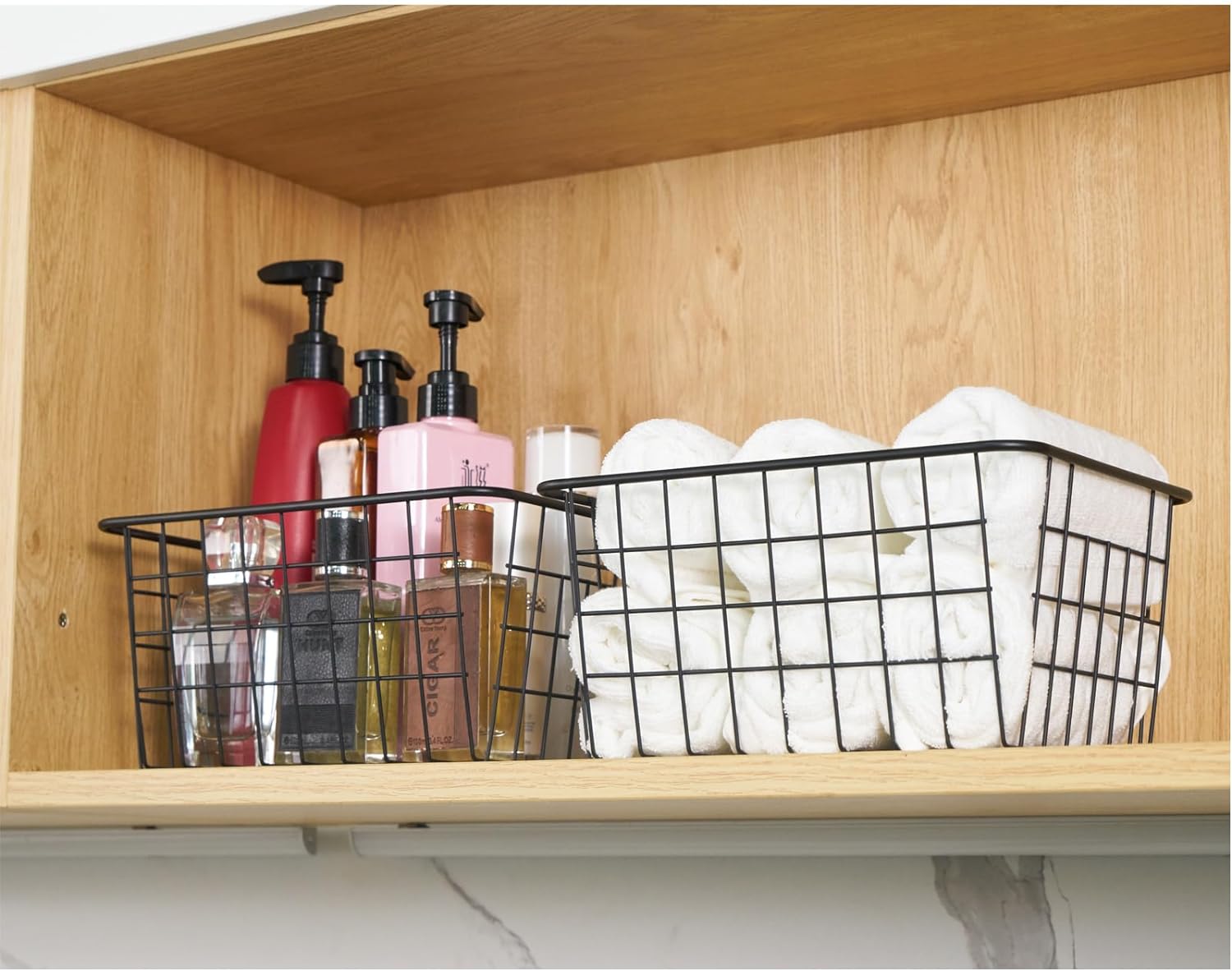 - A basket multi-purpose, flexible storage: the main material of the wire storage basket is wire, with good ductility and plasticity, can store fruits and vegetables, toys, books, toiletries, etc., easily solve the problem of kitchen, bathroom, living room clutter.