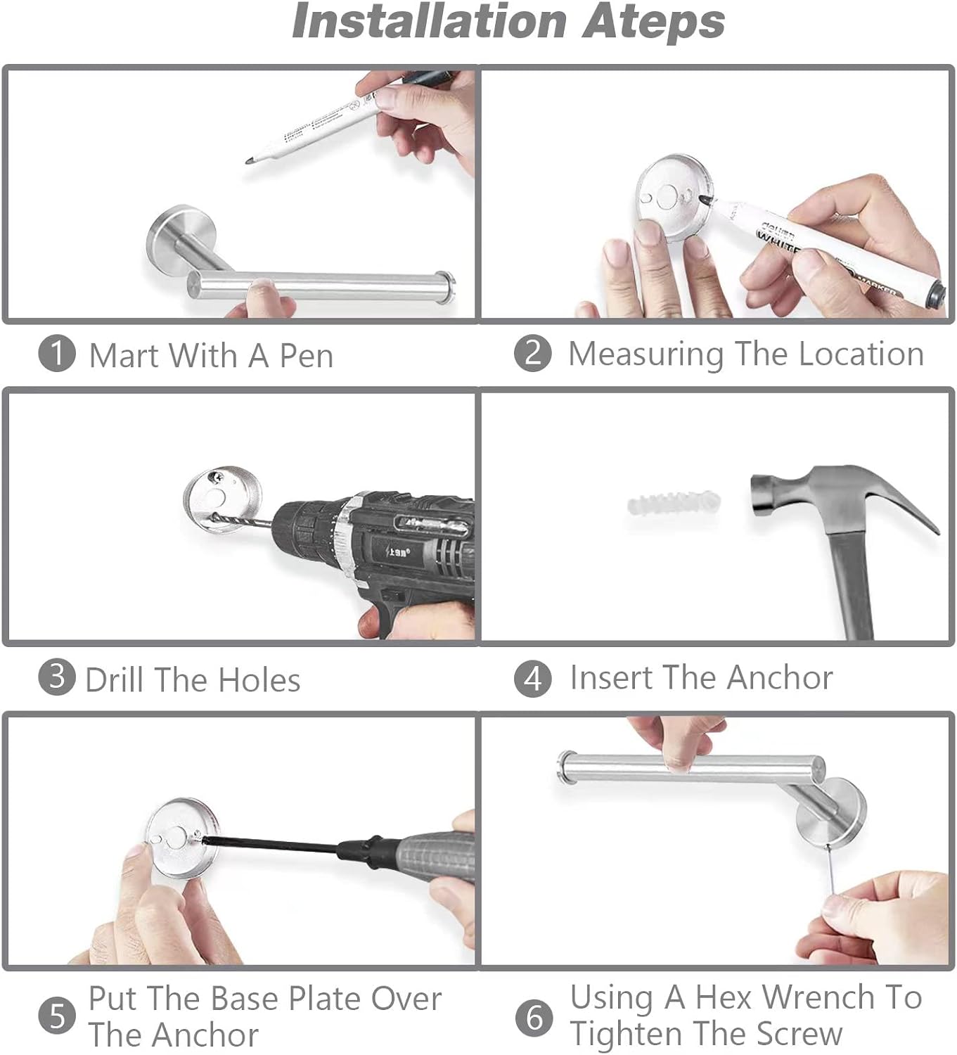 - 【Easy Assembling 】:Screw mounted installation.PACKAGE INCLUDES: 2 xTowel Bar , Hardware package, installation instruction manual and Stainless steel screws. Carefully polished and seamlessly connected between the columns.Concealed screw towel hanger design makes the product look more beautiful and modern, hex screws are reinforced to prevent from rotation.