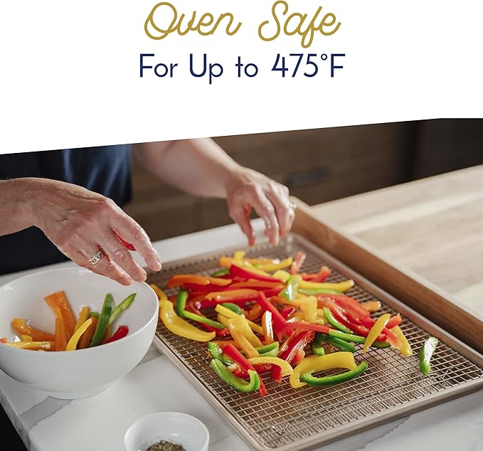 - FOOD SAFE, OVEN SAFE - Ultra Cuisine's 1/2 sheet pans for baking and oven wire rack are nonstick, food-safe, PFOA-Free, PTFE-Free, and oven safe so you can cook and bake with no worry. Bake like a pro for a lifetime!