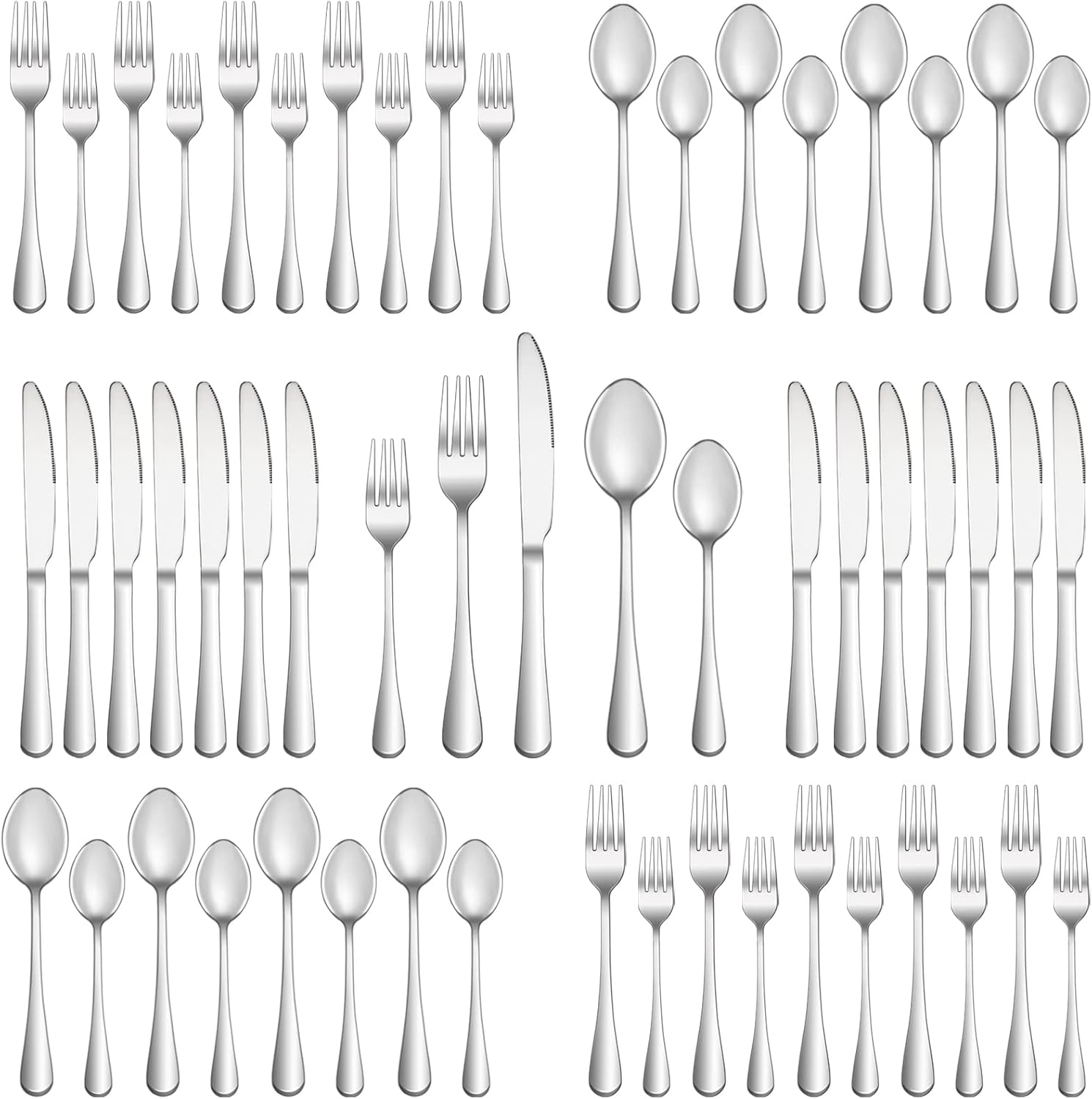 40 Piece Silverware Set Service for 8,Premium Stainless Steel Flatware Set,Mirror Polished Cutlery Utensil Set,Durable Home Kitchen Eating Tableware Set,Include Fork Knife Spoon Set,Dishwasher Safe