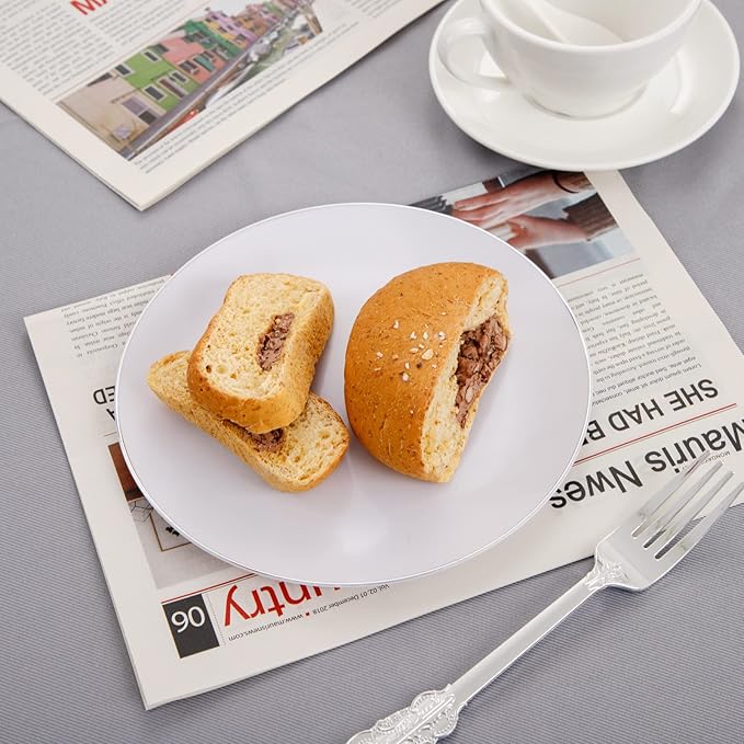 - FOR EVERY OCCASION: KIRE white and silver plastic plates that are suitable for a variety of social events, such as for party, weddings, Halloween, Thanksgiving, Christmas, holidays, suitable for all occasions